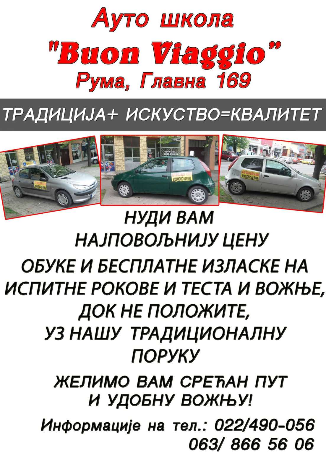 Auto škola Buon Viaggio nudi Vam besplatne teorijske ispite i besplatne praktične ispite vožnje, sve dok ne položite i dobijete dozvolu. Svakodnevno radimo: