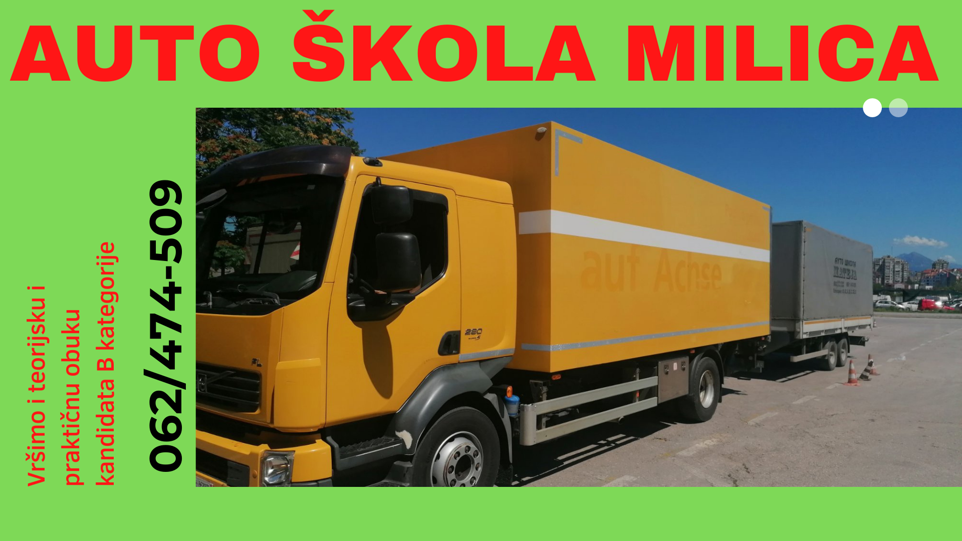 Vršimo i teorijsku i praktičnu obuku kandidata za kategorije: „A“, „A1“, „A2″,“ B“,“ C“,“ CE“, „D“.