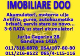 Prodaja akumulatora, motornih ulja, brisača, guma i ostale autokozmetike. RECIKLAŽA – STARO ZA NOVO. Uz stari akumulator dobijate popust, na već povoljne cene, kao i mugućnost plaćanja na 3 do 6 rata. Nalazimo se na dve lokacije: Jurija Gagarina 28, Novi Beograd 011/318-68-78, 064/107-80-80 Gandijeva 148A, Novi Beograd 011/219/85-22 065/4-115-116 DOĐITE I UVERITE SE U KVALITET NAŠIH PROIZVODA I USLUGA!
