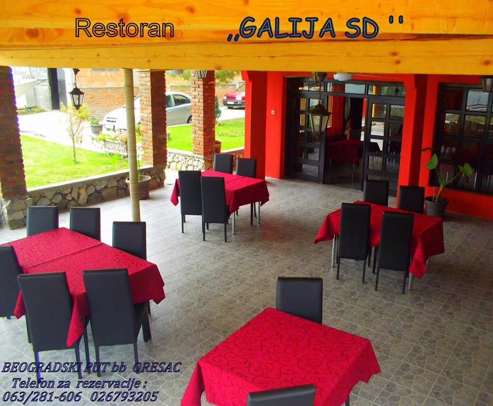 Romantican i miran,smesten na samoj obali Dunava , restoran ,,Galija“ predstavlja mesto predaha i gastro ugodjaja .Nas restoran vam nudi bogate porcije recne ribe ,kao i jela sa rostilja po veoma pristupacnim cenama. Osoblje ovog jedinstvenog restorana ce se truditi da svojim znanjem i umecem odrzi uslugu na najvecem nivou i ucini Vam boravak u njemu prijatnijim.